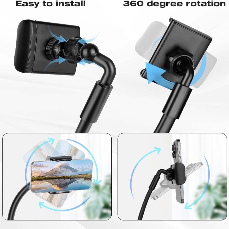 Flessibilità assoluta, angolazioni senza sforzo - Il braccio a collo d'oca ultra-adattabile di questo supporto si piega e mantiene qualsiasi posizione. Grazie alla clip rotante a 360°, è possibile passare senza sforzo dalle riprese orizzontali a quelle verticali per ottenere l'inquadratura perfetta, sia che si stia creando a letto sia che si stia vivendo un'avventura.